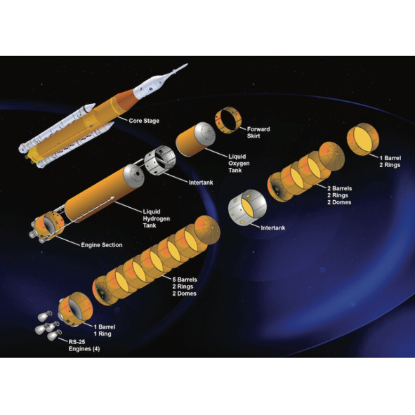 PAR has played an integral role supporting production of the core stage, stage adapter and Orion crew module using our I-STIR friction stir welding technology. The rocket’s fuel tanks are primarily what makes up the core stage of the rocket. Our friction stir welding systems are used in the production of the barrels, rings, domes and inter-tank assemblies that make up the components of fuel tanks of NASA’s Space Launch System (SLS) core stage. For context of size, when the core stage tank is in a horizontal assembly position, it is over 27 feet wide and 212 feet long! That’s as tall as 7 telephone poles stacked on top of each other!